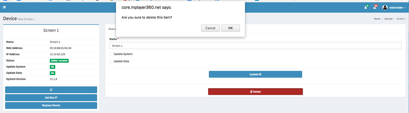 To delete the device, click the Delete button to delete the device. You will be asked to confirm that the device should be deleted: