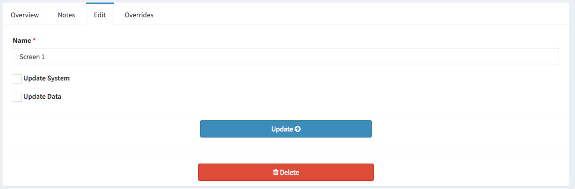 The Edit tab is where you can edit the name of a device, update its system or data, or delete it: