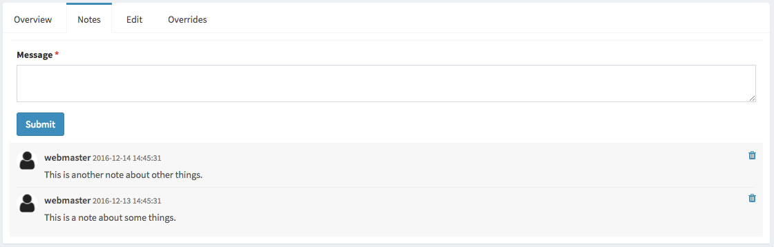 You add a note to a device on its details page. To view a device's details, find it in the device list and click on the corresponding icon in the Actions column. You will be taken to the device's detail view page: