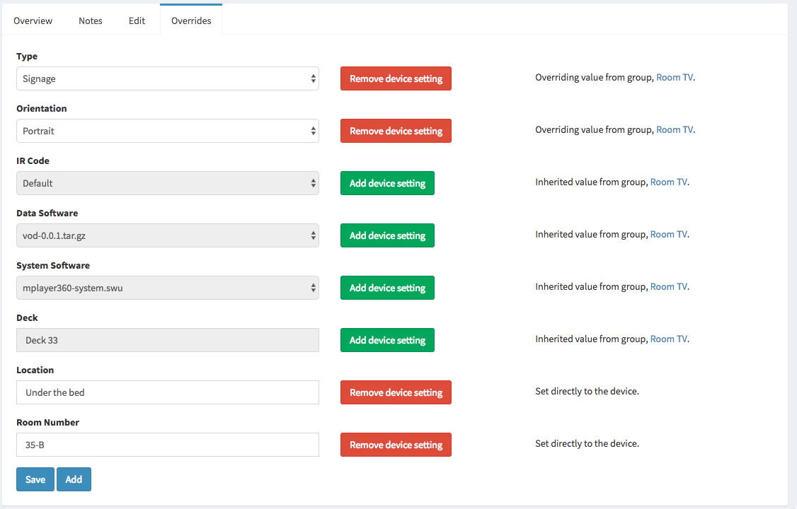 To view or edit a device's details, click on its icon in the device list's Actions column. You will be taken to the device's detail view page:
