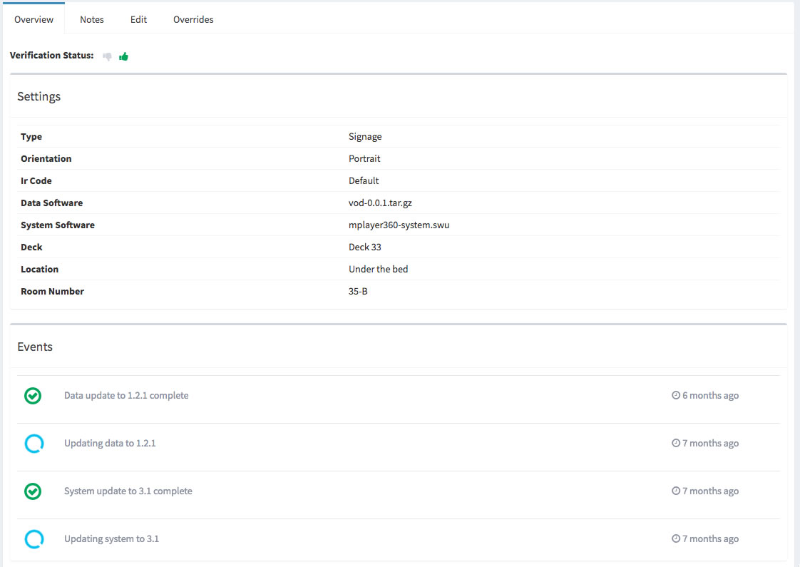 You update a device's system and/or data on its details page. To view a device's details, find it in the device list and click on the corresponding icon in the Actions column. You will be taken to the device's detail view page: