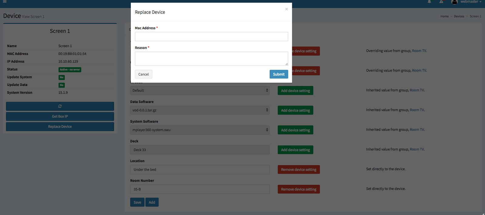 Click on the Replace Device button. You will be asked to confirm that the device should be replaced: