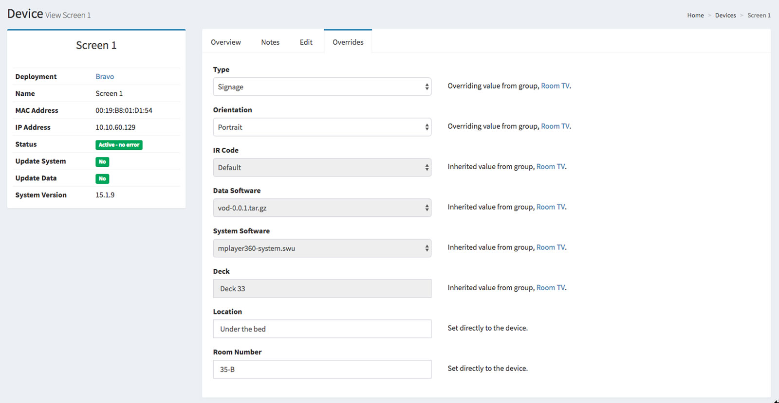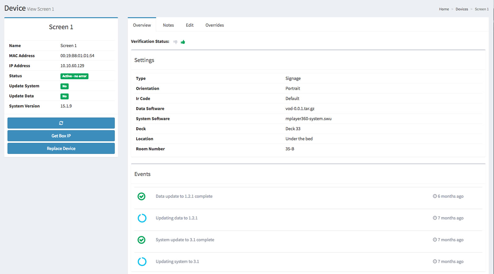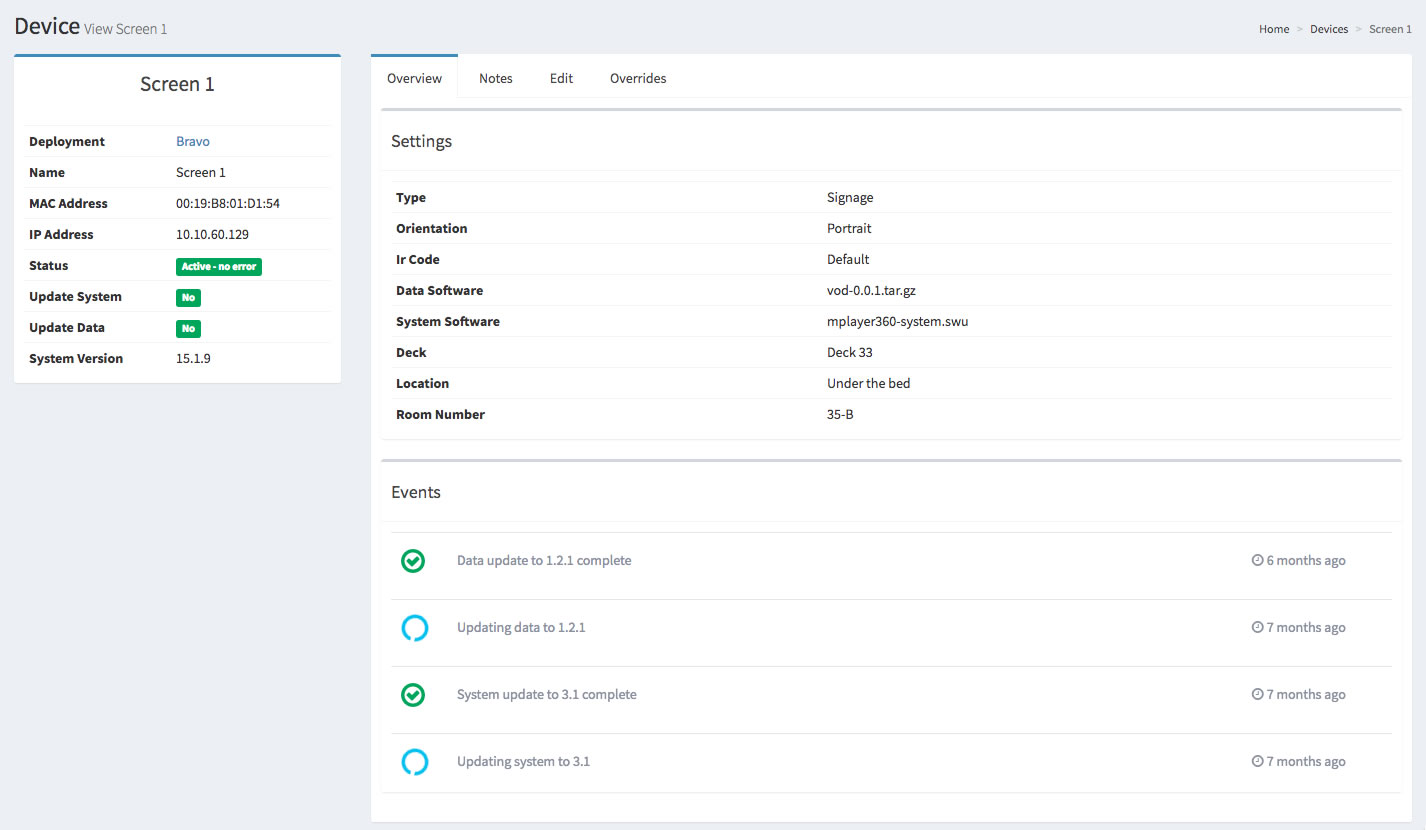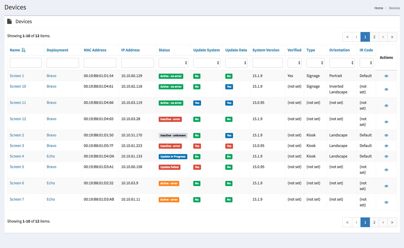To view device's details, click on its icon in the Actions column. You will be taken to the device's detail view page: