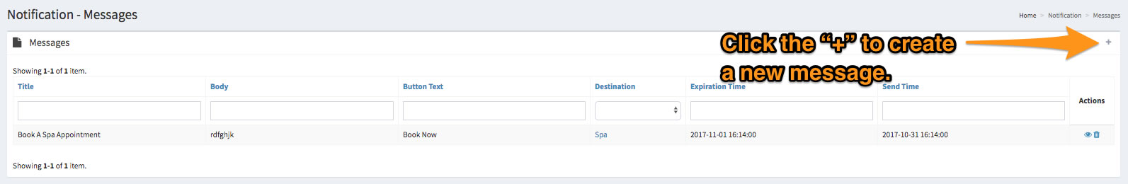Click the + near the upper right-hand corner of the page to create a new message. The Create Message tab of the new message process will appear:
