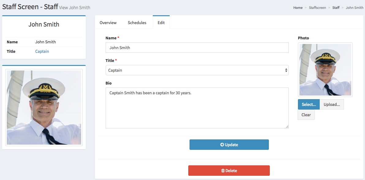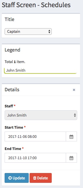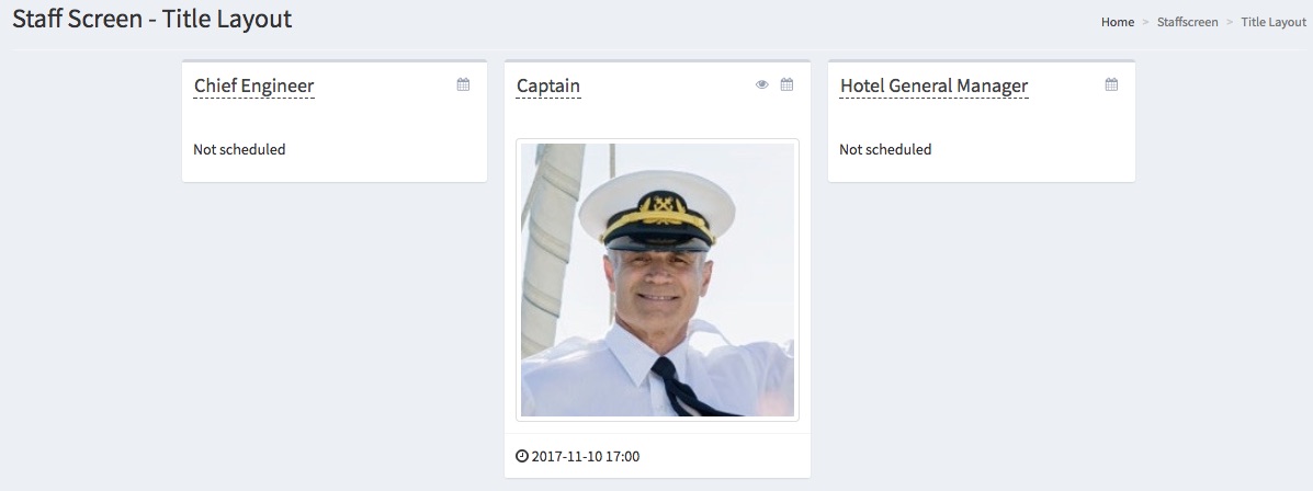 When a staff member is currently scheduled, they will automatically appear on the current staff screen display.